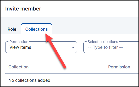 By default, the user will have "View" rights to all collections. These rights can be modified by selecting the "Collections" tab at the top of the form.