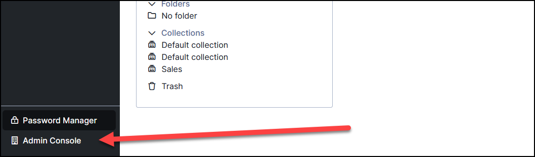 Log in to your vault and select the correct organisation via the "Admin Console"